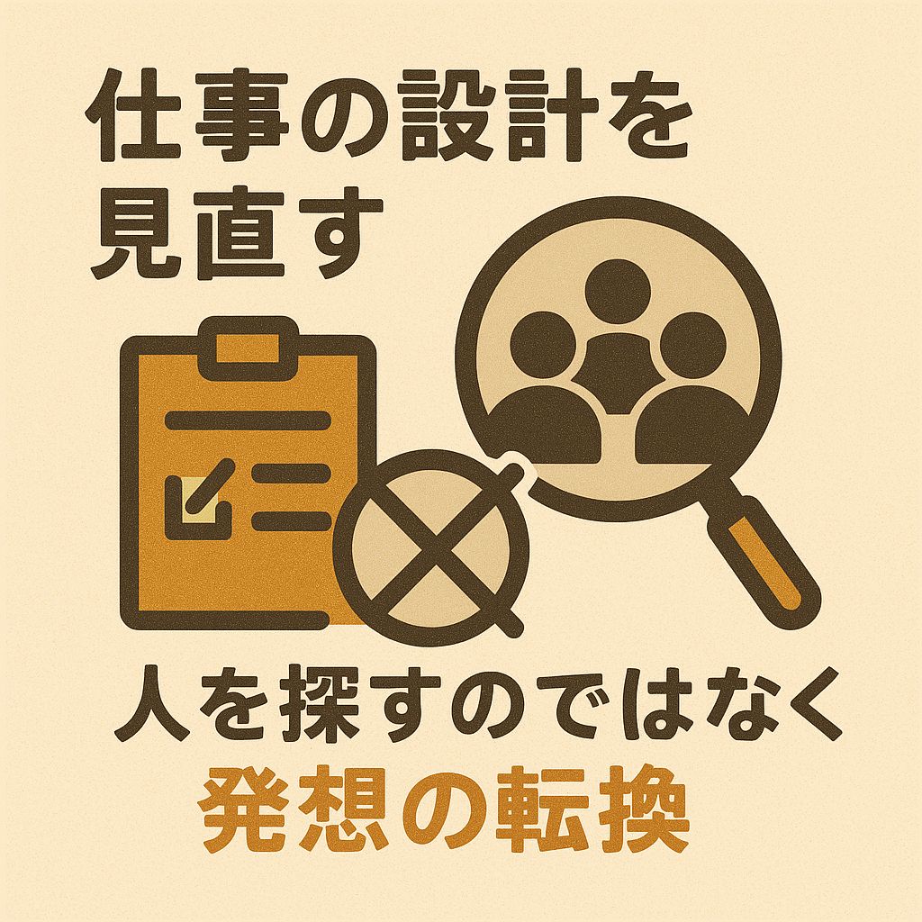 人が足りないというより、“仕事の設計自体”がずれているのではないか──その視点がいま求められています。必要なのは「人を探すこと」ではなく、「その仕事に人が集まるように設計を変える」発想の転換です。