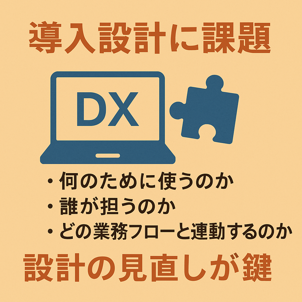 行政や商工団体が主導して進める地域のDX(デジタルトランスフォーメーション)施策は、補助金を活用したITツールの導入や、研修会の開催など、数多くの事例が存在します。しかしその一方で、「導入したけれど使われていない」「使いこなせていない」「そもそも業務に合っていない」という声も、現場では根強く残っています。多くの場合、“導入すること”自体が目的になっており、「使い続けられる設計」や「現場で根づくプロセス」まで設計されていないのです。つまり、「ツールの善し悪し」以前に、“導入設計”そのものに課題がある──これが、定着しないDXの構造的な原因です。導入前に「何のために使うのか」「誰が担うのか」「どの業務フローと連動するのか」を徹底的に可視化・再設計しなければ、たとえ高機能なシステムでも、机上の空論で終わってしまいます。