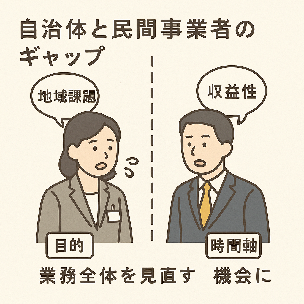 その背景には、“立場の違い”だけでなく、“目的のズレ”や“時間軸の違い”があります。自治体は法令・予算・議会などの制約下で動く一方、民間は機動力と収益性を重視します。例えば、行政が「地域の課題解決に協力してほしい」と依頼しても、民間側は「ビジネスとして成立しない」と判断する──。このように、お互いの“前提”が共有されないまま話が進むと、連携は表面的になりがちです。